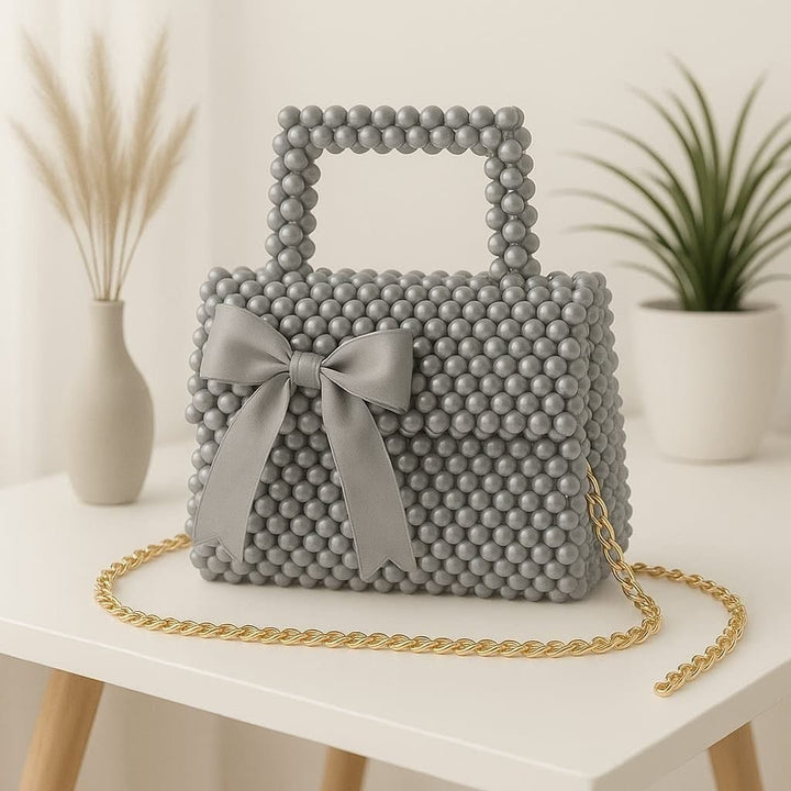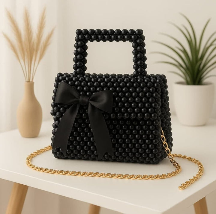 Sturdy top handle with matching pearl beads